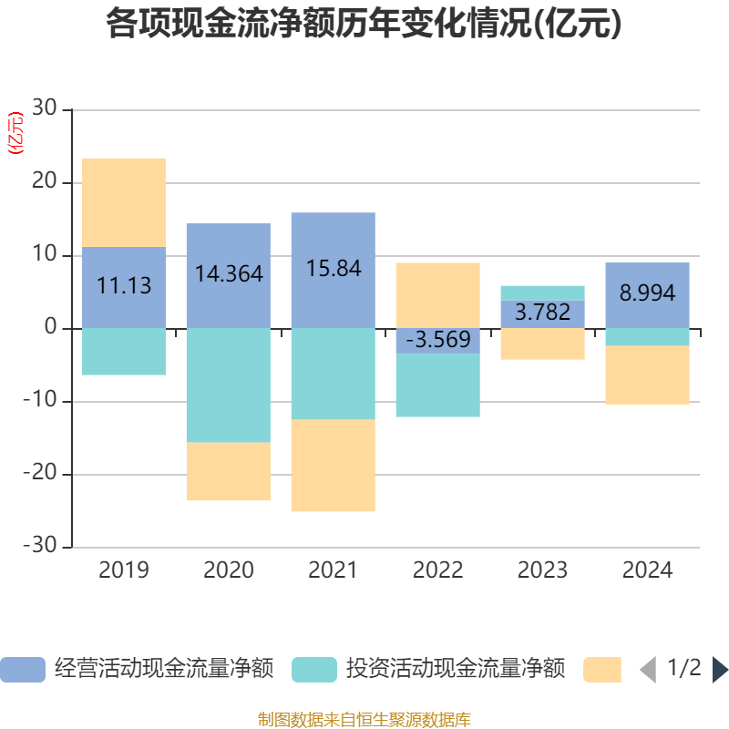 截至2024年,公司经营活动现金流净额为8.99亿元,同比增长137.79%;筹资活动现金流净额-8.05亿元,同比减少3.72亿元;投资活动现金流净额-2.46亿元启盈策略,上年同期为2亿元。