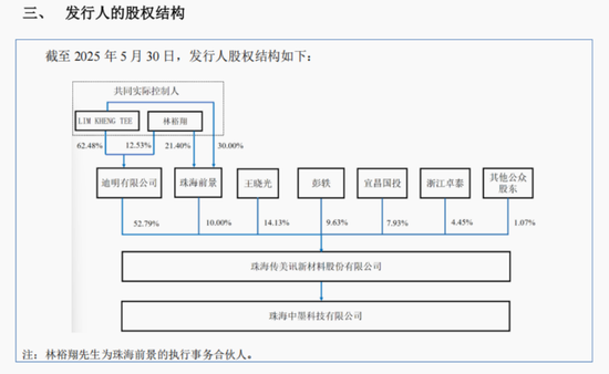 传美讯的实际控制人为LIM KHENG TEE与林裕翔,二人通过控股股东迪明公司及员工持股平台珠海前景合计控制公司62.79%的股权,二人签有一致行动协议。